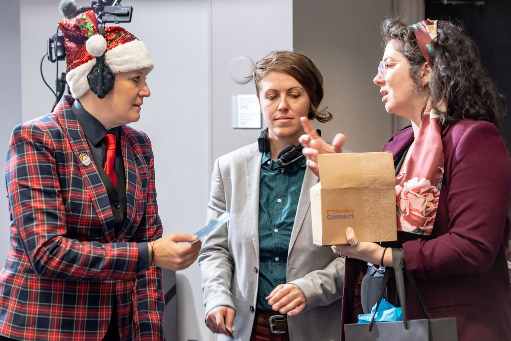 This Holiday Toast we gave gifts to our Women In Media grips, carpenters, and art department who have a serious career trajectory in those fields! Women In Media members Emma Forthofer, Gray Brackett, and Macie Collela received $1,200 worth of DeWalt power tools through their Grow the Trades program.